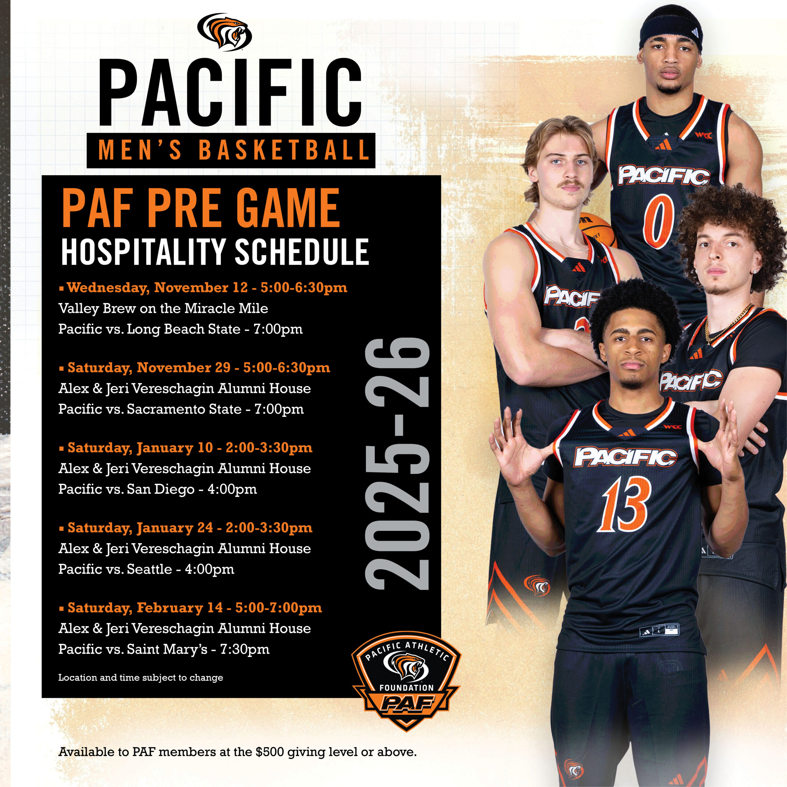 These events are available to PAF members at the $500 giving level or above. If you have any questions or are unsure if you are eligible, please contact the PAF at PAF@pacific.edu.